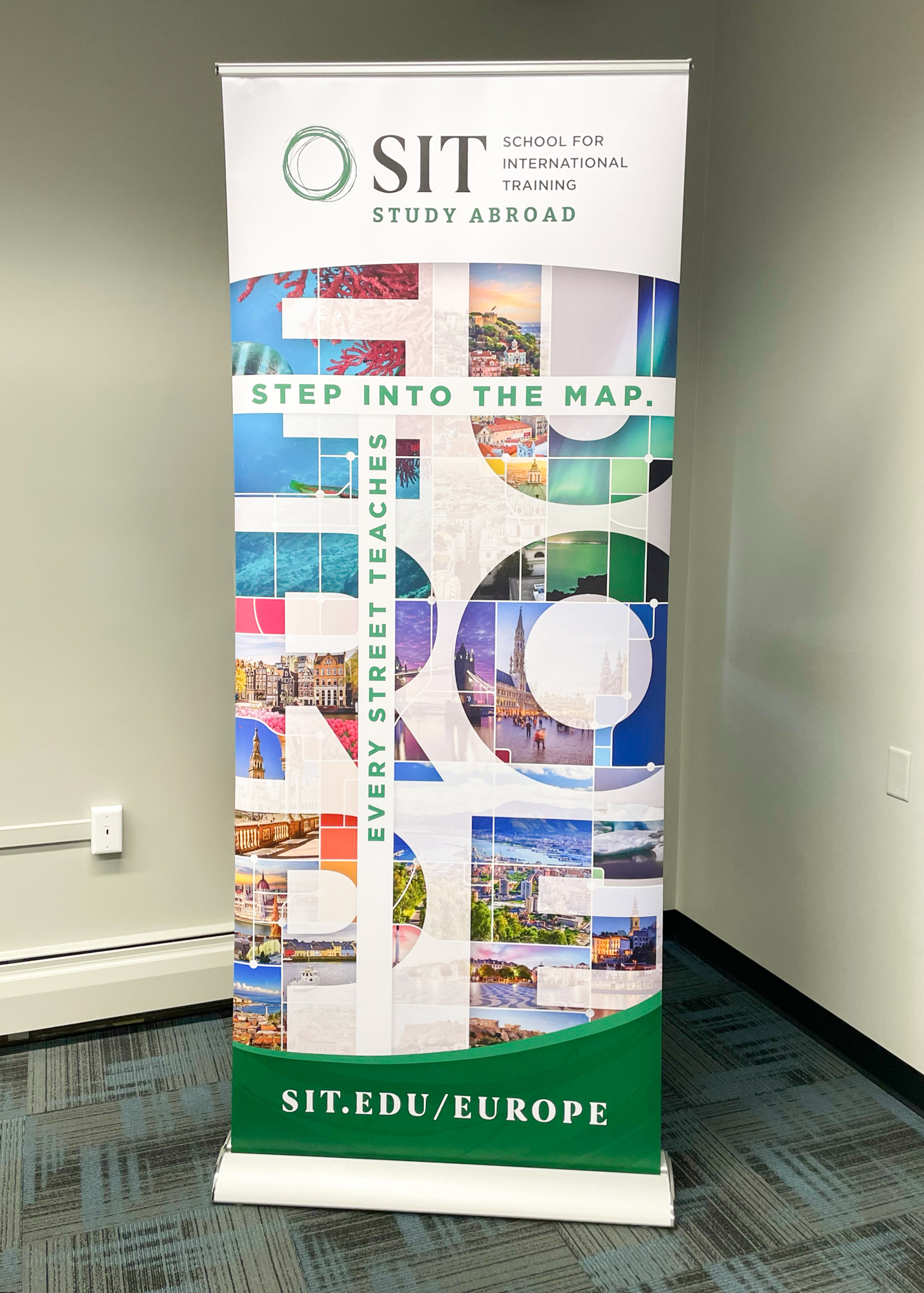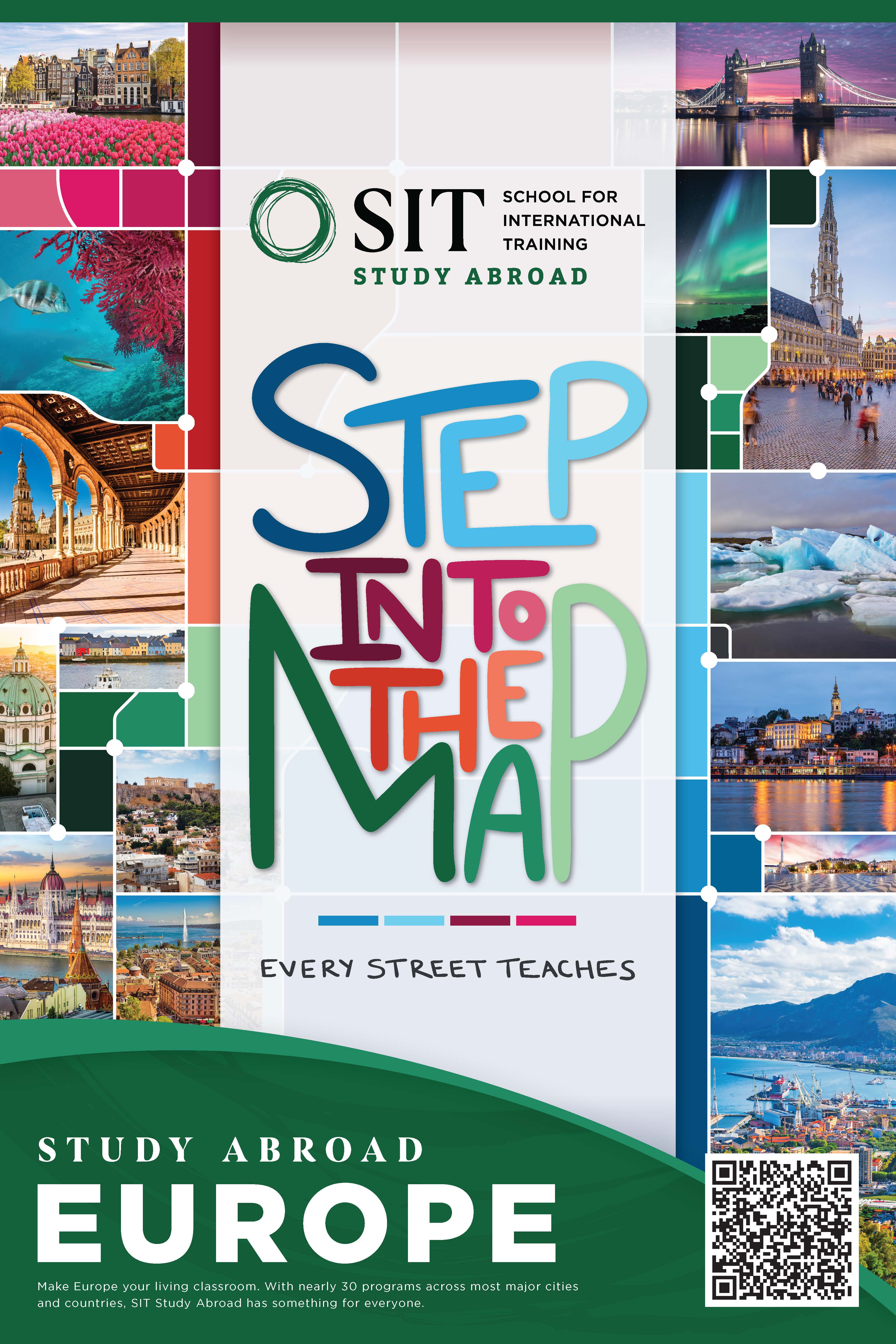 I led the design and execution of this comprehensive marketing campaign to promote School for International Training’s European Study Abroad programs. Deliverables included a full suite of print and web assets: large pop-up banners, postcards, posters, flyers, and custom graphics for email and social media. I successfully elevated the brand’s secondary color palette and incorporated a hand-lettered illustration of the slogan to add a unique, personal touch to the campaign aesthetic.